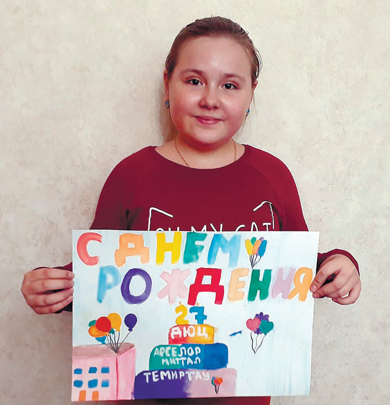 - У нас в студии создалась вокруг этого праздника особая, торжественная атмосфера. Дети с удовольствием рисовали открытки ко дню рождения и старались подчеркнуть статус нашего центра. Ребята нарисовали торты, на которых был изображён наш завод, рисовали ребятишек в касках, делали надписи: «АрселорМиттал Темиртау», «27 лет» и многое другое. То есть они показали, что действительно гордятся тем, что их родители работают на металлургическом комбинате, - говорит руководитель изостудии «Коллаж» Татьяна Бурова.