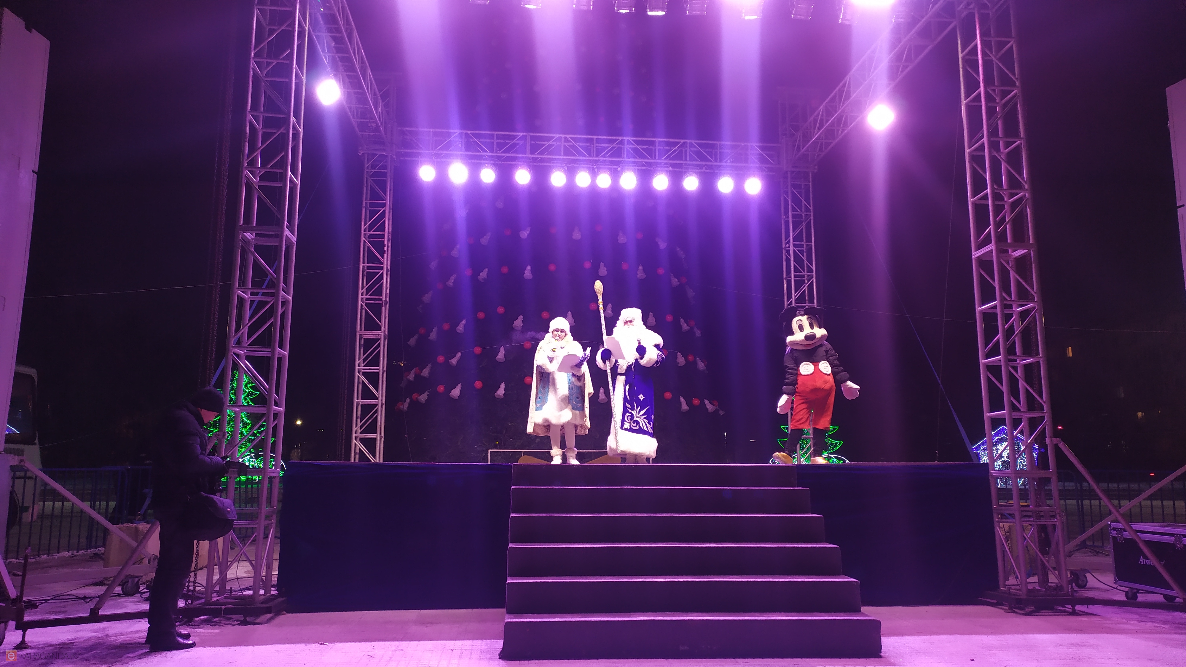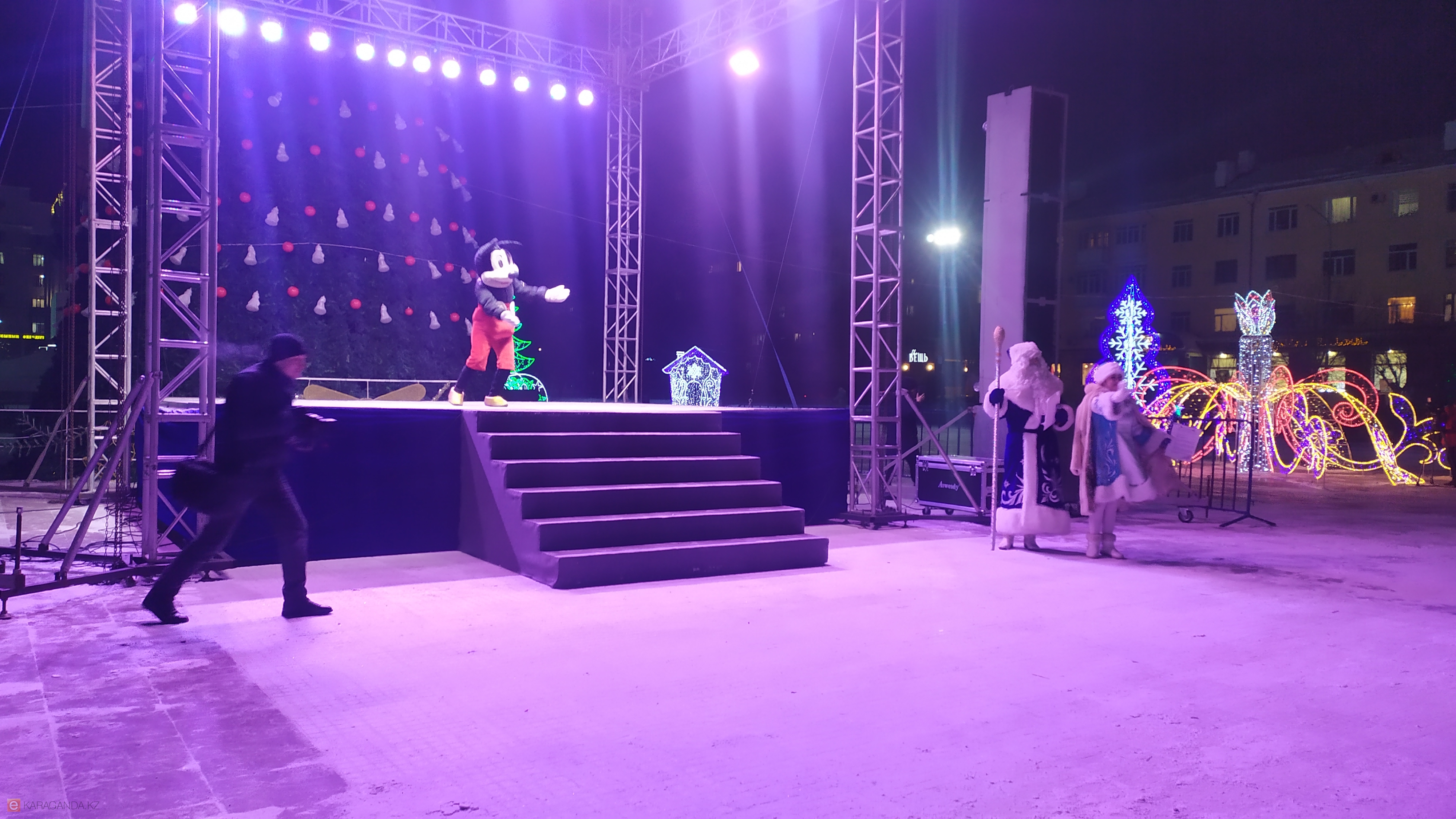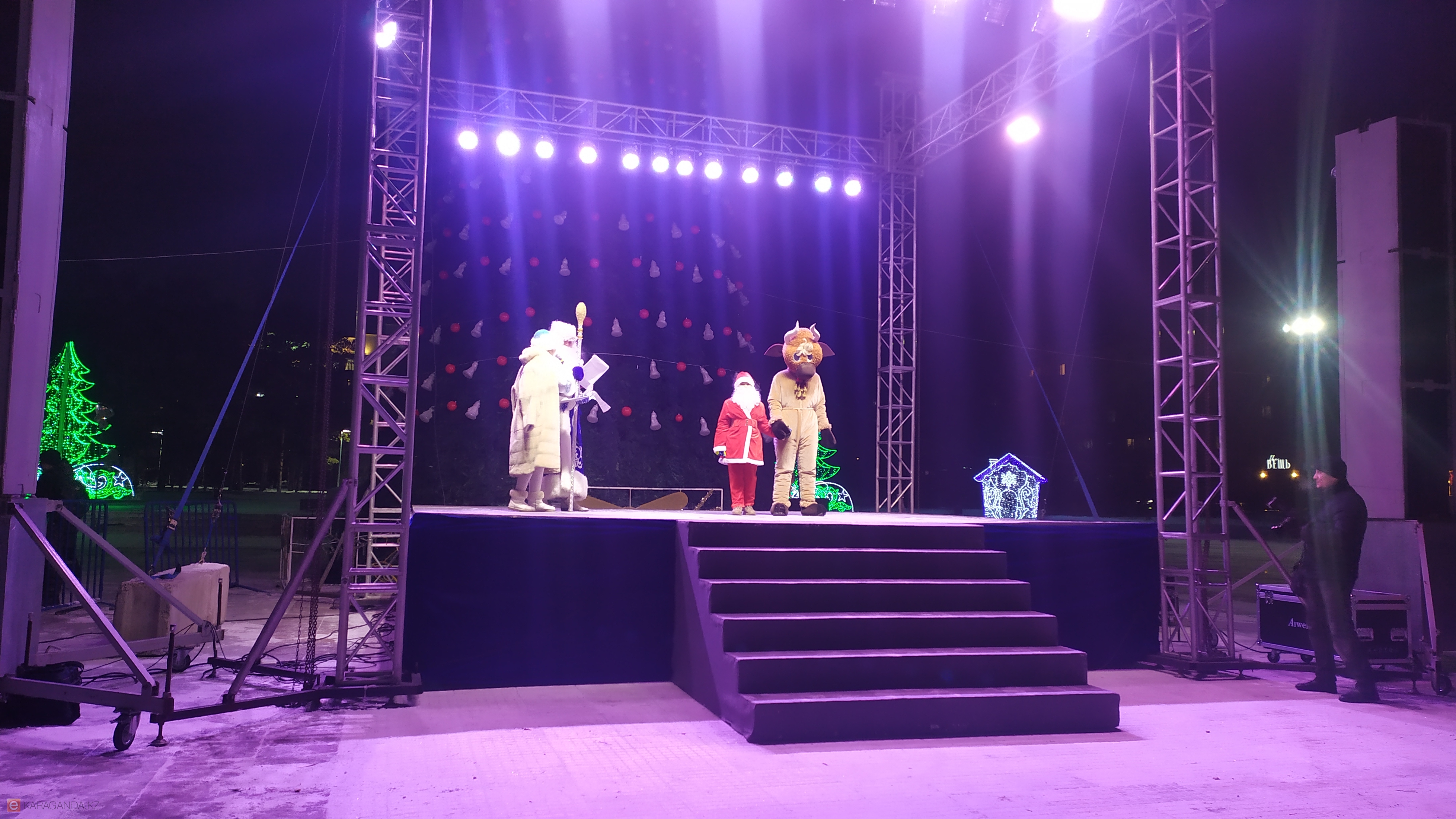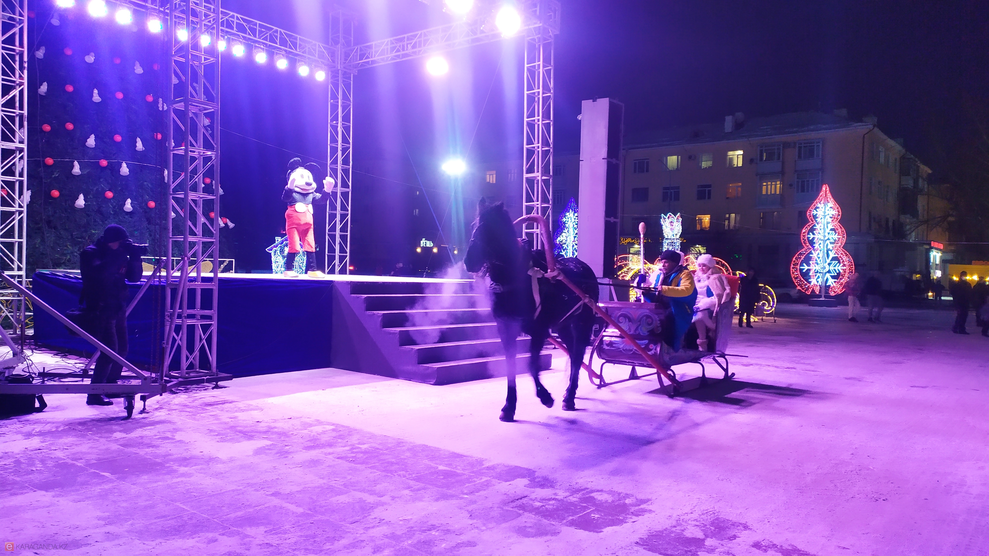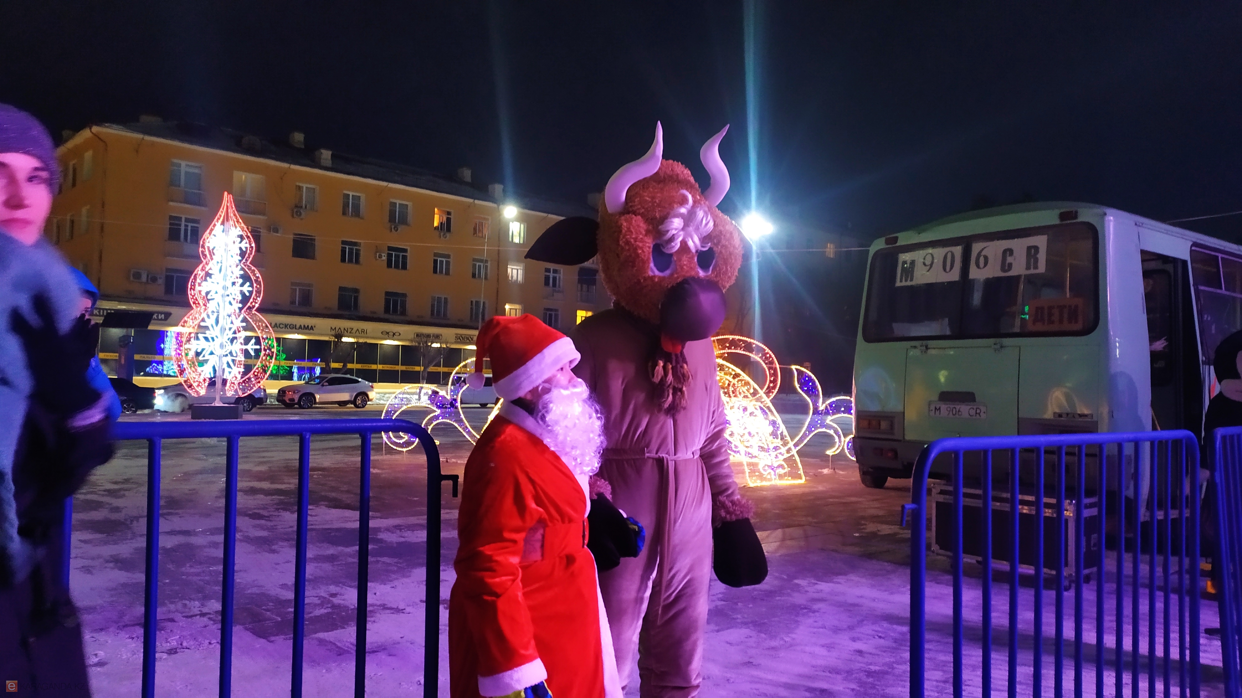 Перед началом церемонии на сцене появился символ уходящего года – мышка. Он поздравил карагандинцев с наступающим праздником и поприветствовал на сцене Деда Мороза и Снегурочкой, которые приехали на санях. Дедушка Мороз поблагодарил мышонка за всё хорошее, что было в 2020 году, а после проводил его в добрый путь. После на главной сцене появился символ Нового, 2021 года – бык, в сопровождении лучшего ученика 2020 года Нұрфуата Бақтыгерей. Все вместе они со взмахом волшебной палочки зажги огни на Главной городской ёлке.
