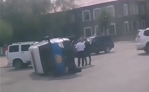 Нередко в ДТП попадают не только автобусы, но и спецтранспорт. В начале мая на пересечении проспекта Бухар жырау и улицы Сатпаева столкнулись полицейская машина «ГАЗель» и «Hyundai». В результате авари полицейская машина опрокинулась на бок.