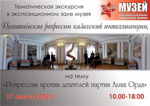 В Музее памяти жертв политических репрессий посёлка Долинка в преддверии празднования Наурыза состоится бесплатная тематическая экскурсия на тему «Репрессии против деятелей партии «Алаш Орда». Её цель - увековечить память о жертвах политического террора.
