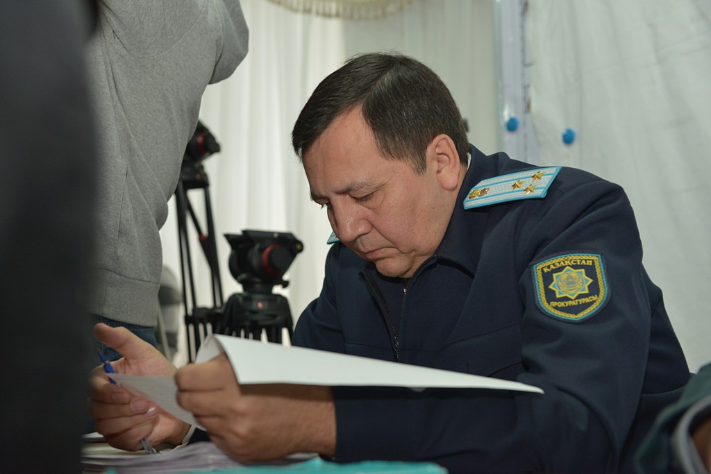 Процесс проходит под председательством судьи Специализированного межрайонного военного суда по уголовным делам Ербола Ахметжанова, сторону обвинения представляют три прокурора - Дастан Секенов, Александр Кирияк и Кемель Шаяхмет.