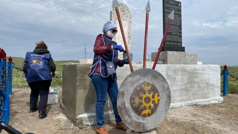 Силами волонтёров ОО «Молодёжный альянс» и педагогов общеобразовательной школы имени Абая посёлка Топар приведён в порядок памятник Шерубаю-батыру. В реставрации объекта участвовали 15 человек.