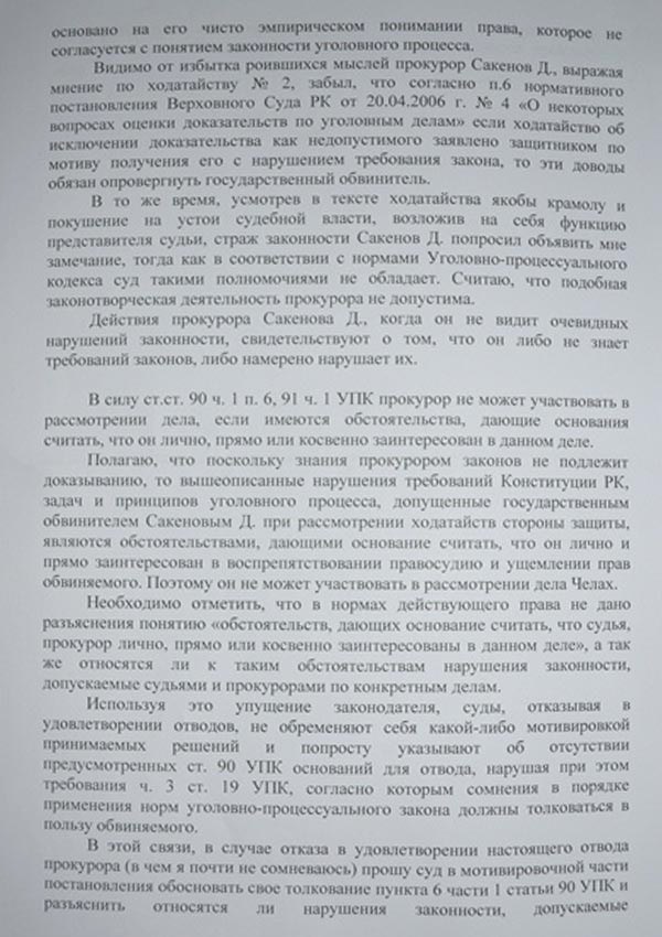 Сегодня медиасайт Guljan.org опубликовал первые добытые через помощника адвоката Николая Долматова документы защиты. Это ходатайства, которые заявлял адвокат Серик Сарсенов.