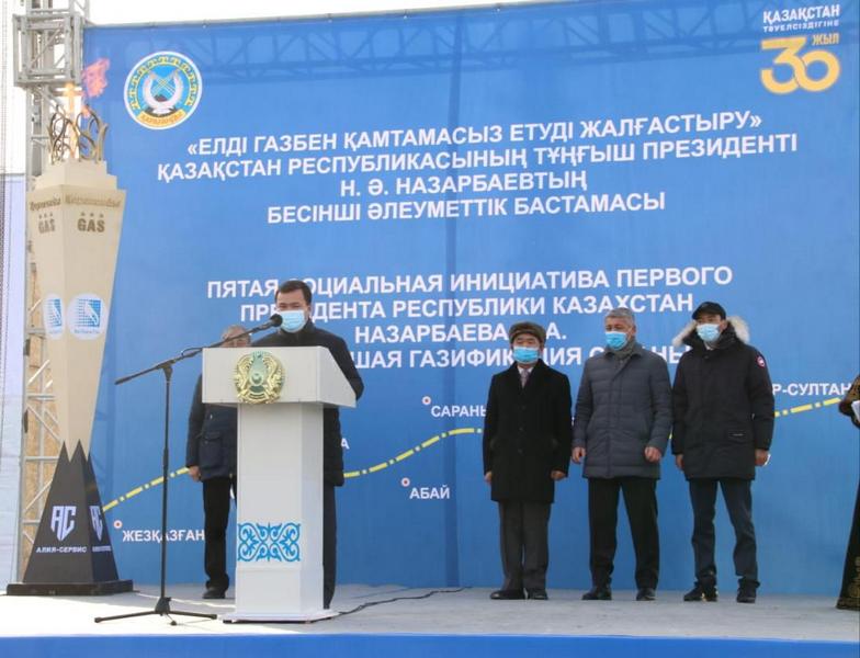 – Три года назад начался проект по строительству газопровода «Сарыарқа». Магистральные сети были завершены в прошлом году, в этом году шло подведение распределительных сетей. Работы успешно завершены, – сказал аким Карагандинской области Женис Касымбек. – Качество жизни наших земляков будет улучшаться. В преддверии 30-летия Независимости нашей страны и Дня Первого Президента считаю сегодняшнее событие большим достижением.