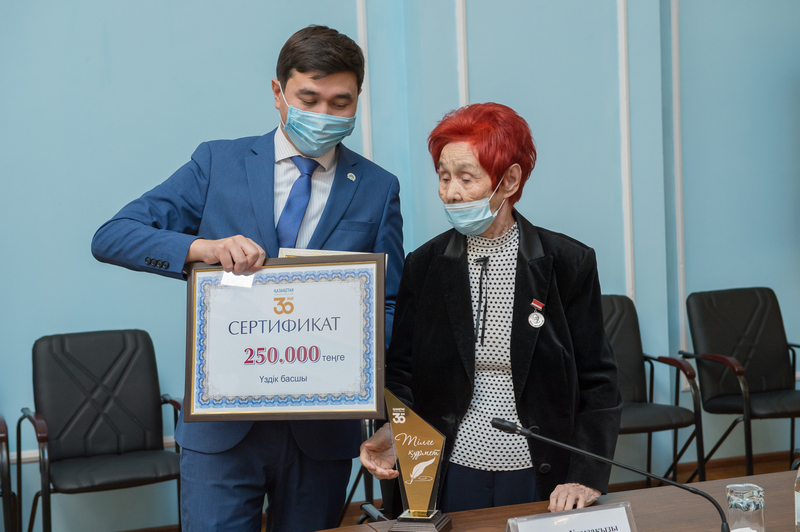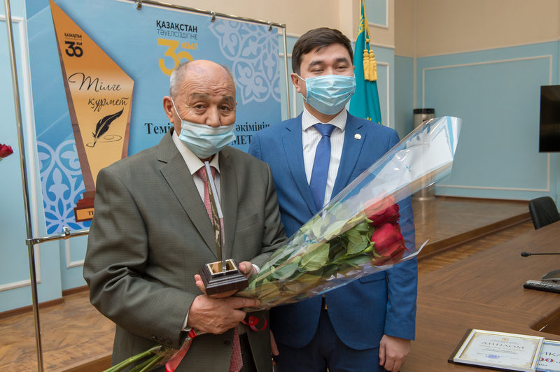 – Опора Независимости – это наш государственный язык. В этой связи в целях поощрения и поддержки лиц, внёсших вклад в реализацию государственной языковой политики по городу Темиртау с первых дней Независимости, от акимата была учреждена премия «Тілге құрмет», – сказал заместитель акима Темиртау Самат Зияшев.