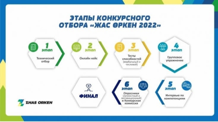 «Жас Өркен» – программа по отбору, привлечению и развитию талантливой молодёжи. Участники проекта в перспективе станут топ-менеджерами и руководителями в компаниях группы фонда. Молодым специалистам за 2 года предстоит пройти интенсивное обучение и четыре ротации по 5 месяцев в ведущих компаниях Казахстана, развить hard- и soft-навыки, обрести профессиональный опыт под руководством лучших наставников группы «Самрук Қазына» и в итоге получить работу в нацкомпаниях.