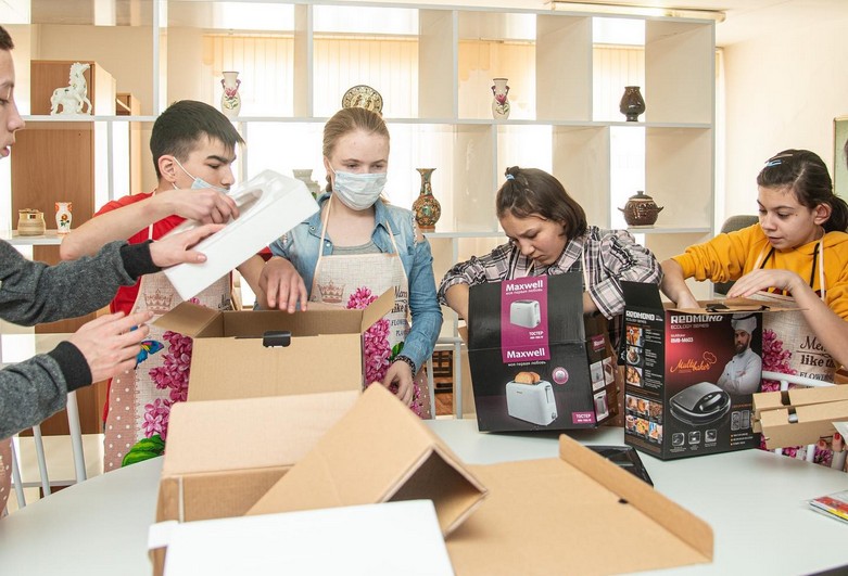 На собранные студентами 100 тысяч тенге была закуплена малая бытовая техника: миксер, тостер, мультиварка, ручной блендер и электровафельница. Воспитанники школы-интерната вместе с педагогами сразу опробовали оборудование и остались им довольны.