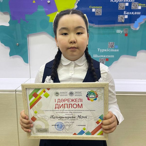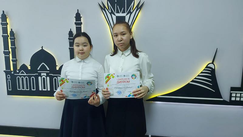 Обладателями дипломов 1-й степени стали ученица 7-го класса СШИ имени Жамбыла Фариза Рахманкулова (руководитель – Мейрамкуль Табынбекова) и ученица 4-го класса школы-лицея № 101 Мерей Жумадильдина (наставник – Рыскуль Манас).