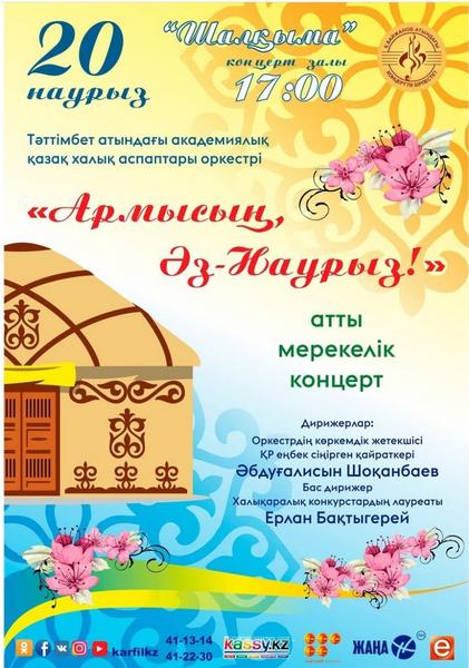 Концерт академического оркестра казахских народных инструментов имени Таттимбета «Армасың, Әз-Наурыз».