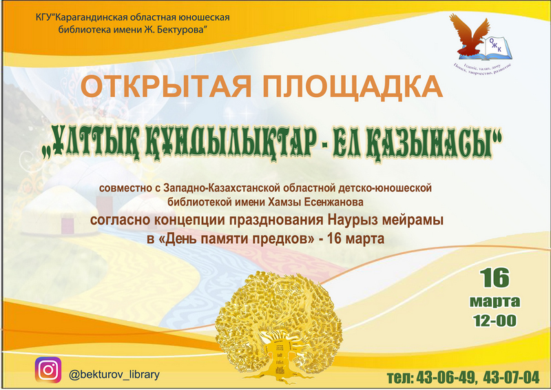 Карагандинская областная юношеская библиотека имени Ж. Бектурова, 15:00