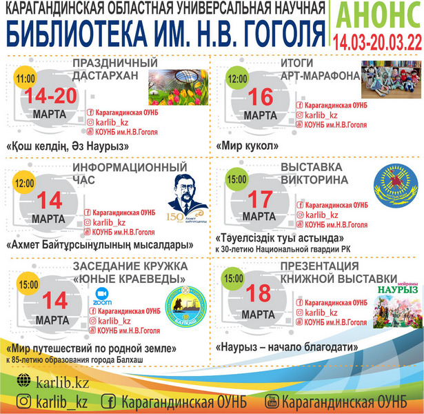 Карагандинская областная универсальная научная библиотека имени Н. В. Гоголя, 15:00