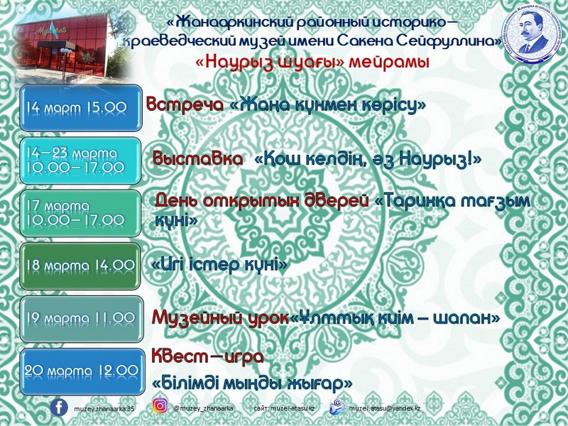 Жанааркинский районный историко-краеведческий музей имени Сакена Сейфуллина, 11:00