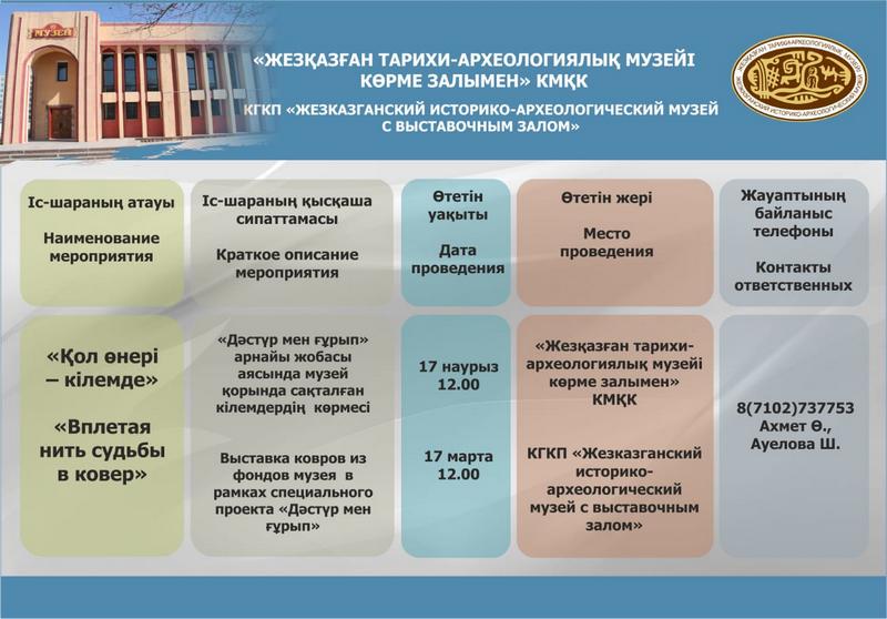 Выставка ковров «Вплетая нить судьбы в ковёр» из фондов музея в рамках специального проекта «Дәстүр мен ғұрып».