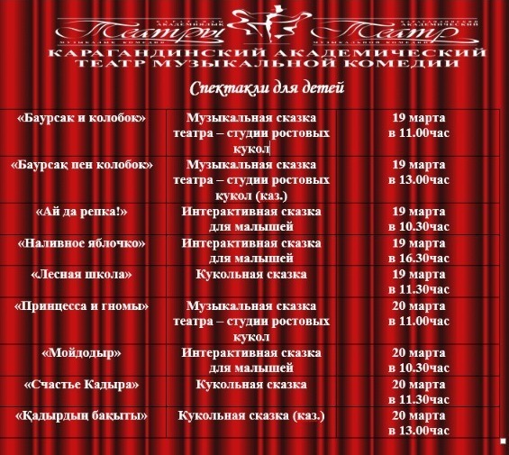 Карагандинский государственный ордена Дружбы народов русский драматический театр имени К. С. Станиславского, 12:00, 14:00