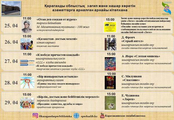 Карагандинская областная спецбиблиотека для незрячих и слабовидящих граждан, 15:00
