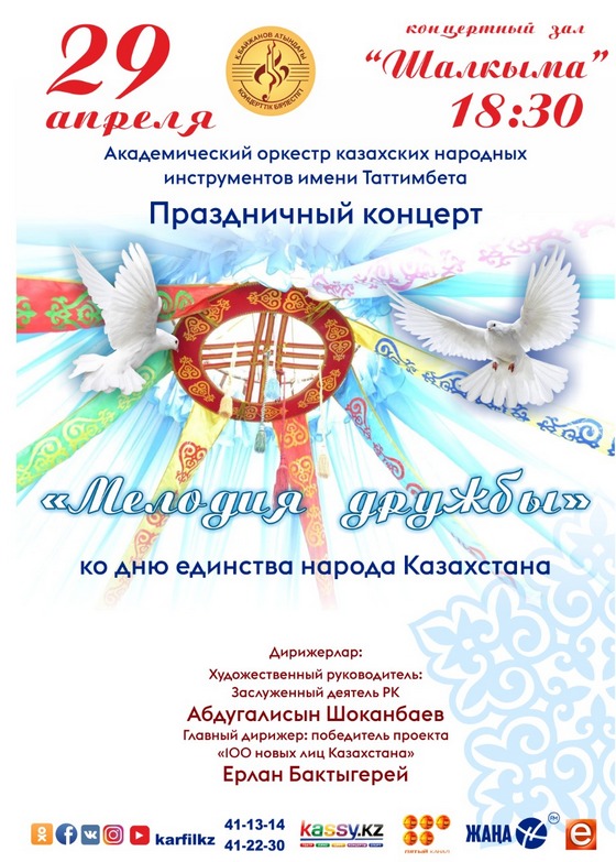 Концерт академического оркестра казахских народных инструментов имени Таттимбета «Мелодия дружбы».
