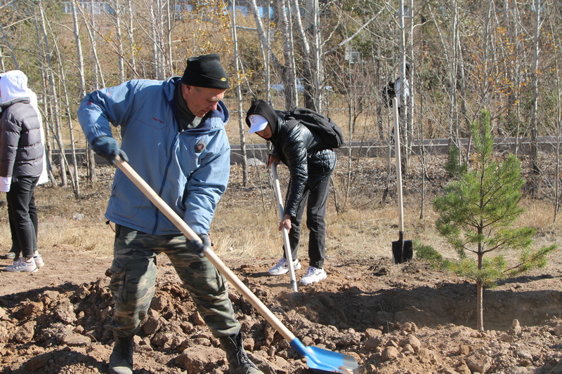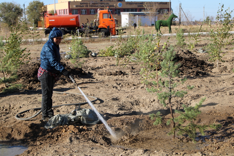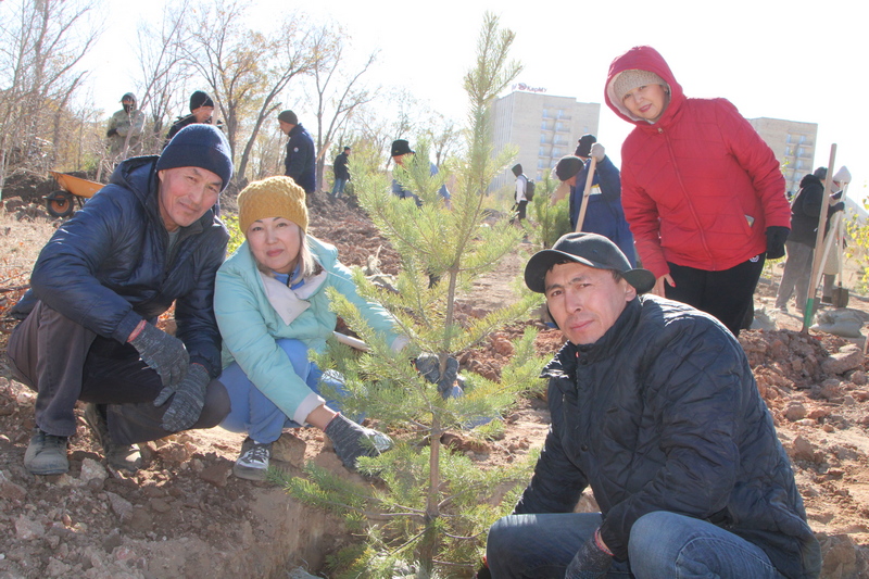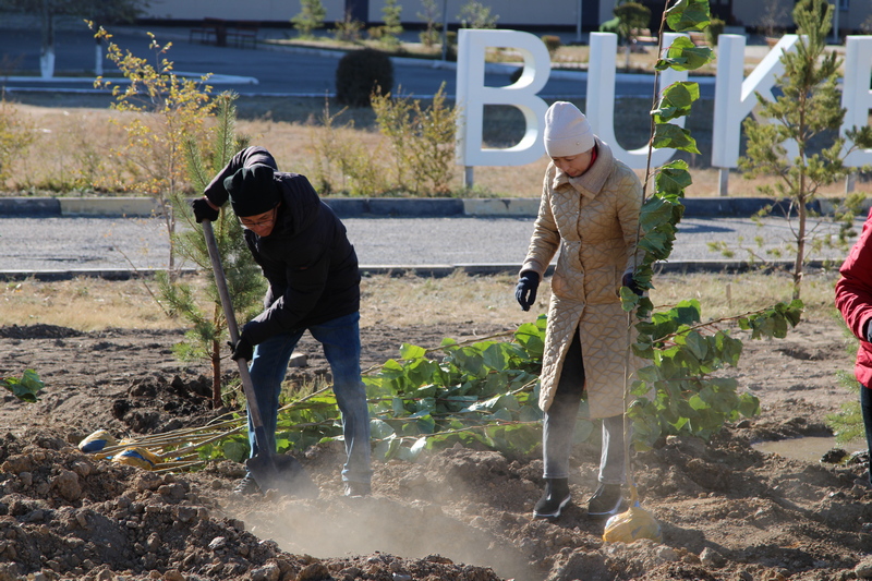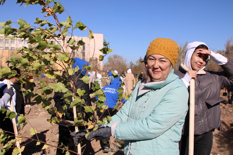 – На этой территории почва солончаковая, на ней плохо растут деревья. Для того чтобы посадить там саженцы, мы завезли удобрения, перегной. Первым этапом посадили около 200 сосен и берёз. Они выбраны неслучайно. Эти саженцы хорошо приживаются в нашем климате. В посадке участвовал как коллектив вуза, так и студенты. Позже мы планируем посадить ещё около 100 елей. Для них нужна более низкая температура воздуха, – рассказал агроном КарУ имени Е. А. Букетова Задеш Шаушеков.