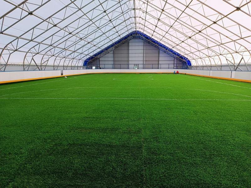 Игровой корт с искусственным покрытием площадью 26 на 56 метров. Трибуны рассчитаны на 80 зрителей. В здании оборудованы раздевалки и душевые.