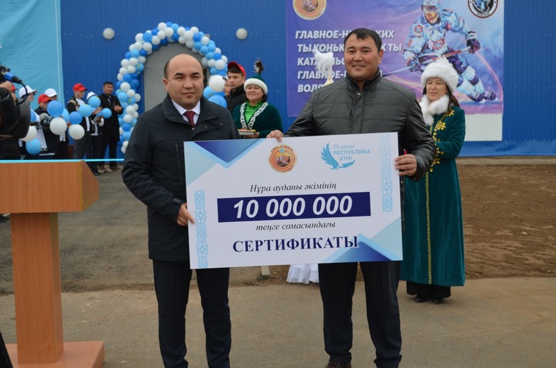 Аким Нуринского района Бакытжан Муканов вручил отделу физической культуры и спорта сертификат на 10 миллионов тенге.