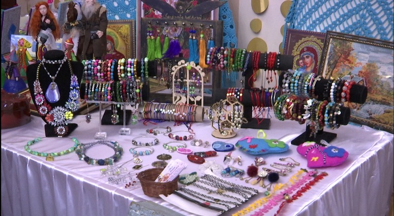 Посетители смогли увидеть различные панно, картины, украшения из бисера, изделия скрапбукинга, из эпоксидной смолы, дерева, вязаные детские игрушки, предметы интерьера, подушки в стиле бохо и многое другое.