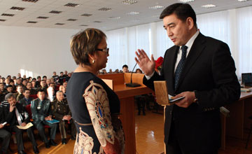 Награды передал вдовам погибших героев вице-министр по ЧС Жанболат Смаилов.