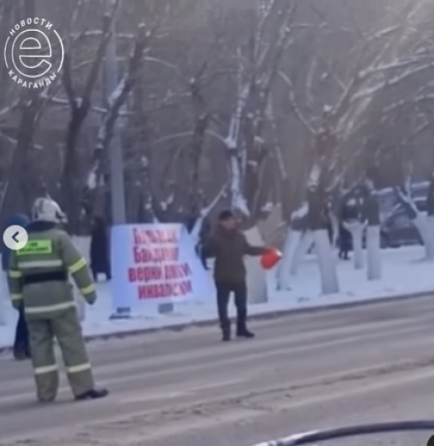 Сегодня, 12 декабря, перед зданием Департамента полиции Карагандинской области мужчина устроил акцию протеста, грозясь совершить самоподжог. Напротив здания полиции мужчина вывесил плакат с надписью: «Полковник Байдженов, верни деньги инвалидам». Позже выяснилось, что протестующий – заместитель председателя общества инвалидов «Жан Дос» Даурен Аминов. Мужчина выступал с требованием выплатить обществу деньги за проделанную работу – установку заборов на территории полицейского участка. Сейчас он задержан сотрудниками полиции, ему грозит штраф и арест до 15 суток за мелкое хулиганство и неповиновение сотрудникам полиции.