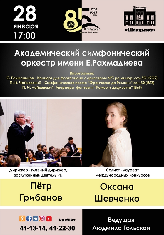 Карагандинцев и гостей города Академический симфонический оркестр имени Еркегали Рахмадиева 28 января в 17:00 приглашает в концертный зал «Шалкыма» на вечер классической музыки, сообщает сайт акимата Карагандинской области.