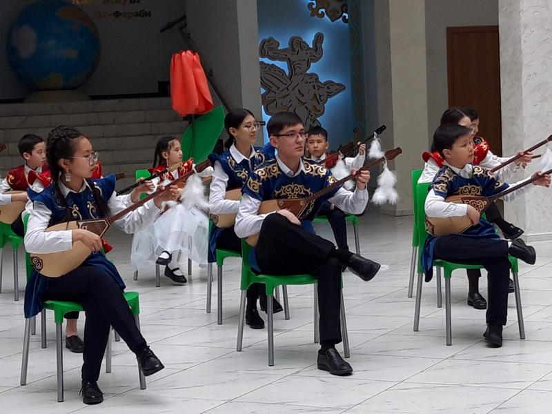 – С самого открытия нашей школы-гимназии в рамках проекта «Домбыра дастан» работает ансамбль домбристов «Үлкілі домбыра». В целом занимаются около 300 детей. Я сама с 10 лет играю на домбре. Получила специальное образование, являюсь лауреатом различных республиканских и международных конкурсов. Сегодня интерес детей к домбре высок. И наша цель – приумножить их любовь к национальному инструменту. С нами вместе сегодня играют и родители, и ученики, и учителя – всего около 40 человек. Самому младшему – 7 лет, а самому старшему – 62 года, – рассказала учитель начальных классов и руководитель кружка домбры школы-гимназии имени Абая Арайлым Кариева.