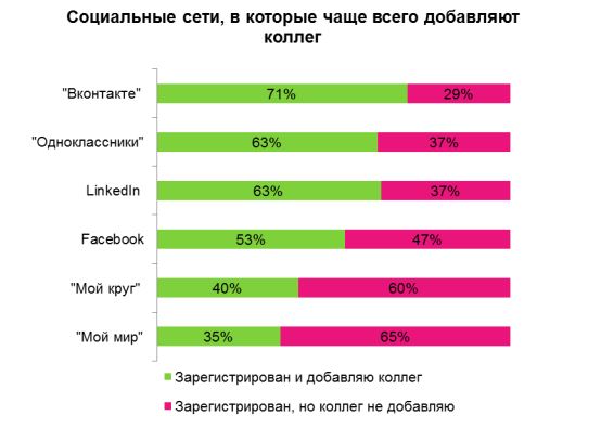 Основные причины нежелания добавлять коллег в «друзья» – редкое использование социальных сетей (39%), нежелание смешивать личную жизнь и работу (30%), а также отсутствие реальных друзей среди сослуживцев (29%).