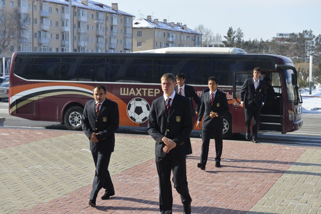 В конце встречи аким области Бауржан Абдишев еще раз напомнил тренерам и игрокам о большой ответственности за результат в год 55-летнего юбилея клуба, болельщики ждут от команды яркой и вдохновенной игры! Затем капитан команды Андрей Финонченко подарил акиму области футбольный мяч и новую форму, окрашенную в оранжевые цвета «Шахтера».