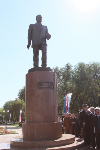 В Караганде с участием акима области Серика Ахметова, и многочисленных представителей общественности состоялось торжественное открытие памятника поэту Касыму Аманжолову в сквере, носящем его имя, на пересечении улиц Сакена и Кривогуза.