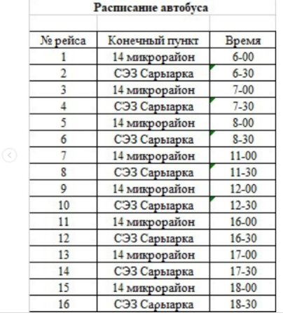 Автобус с пометкой «71 маршрут СЭЗ» будет выполнять 16 рейсов только в будние дни и останавливаться на остановке специальной экономической зоны «Сарыарка» и Тау Кен Темір.