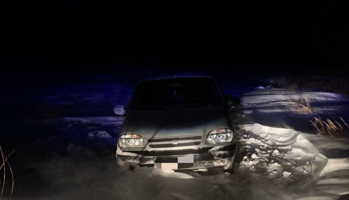 В Осакаровском районе в 50-ти километрах от поселка Молодежный спасатели освободили из снежного заноса автомобиль «Нива», в котором находились два человека.