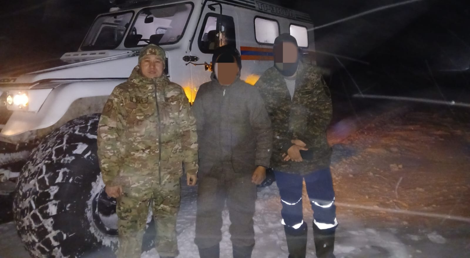 Аварийно-спасательные работы проводились и в Нуринском районе. В 20-ти километрах от села Акмешит спасли двоих путников, застрявших в снежном заносе на автомобиле.
