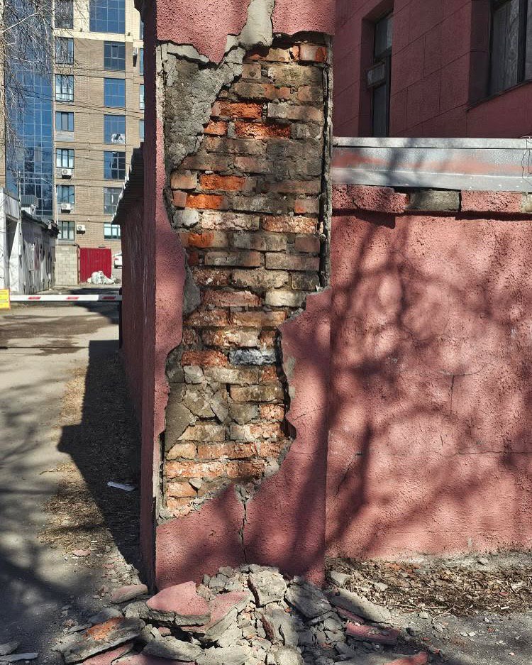 Фото от подписчиков ekaraganda.kz В редакцию информационного агентства ekaraganda.kz обратились жители проспекта Назарбаева: в одном из домов по этой улице отремонтированный несколько лет назад фасад попортился – стена входной группы во двор обнажилась до кирпичей. Кто должен следить за этим – власти или жильцы?