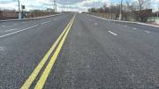 Вчера, 13 апреля, на вышеуказанном участке нанесли белые линии дорожной разметки. А сегодня там появилась двойная сплошная полоса жёлтого цвета. Путепровод готовят к открытию.