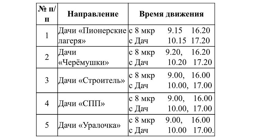 Однако власти города добавляют, что в дальнейшем расписание будет скорректировано. Кроме того, его для удобства горожан разместят во всех дачных автобусах.