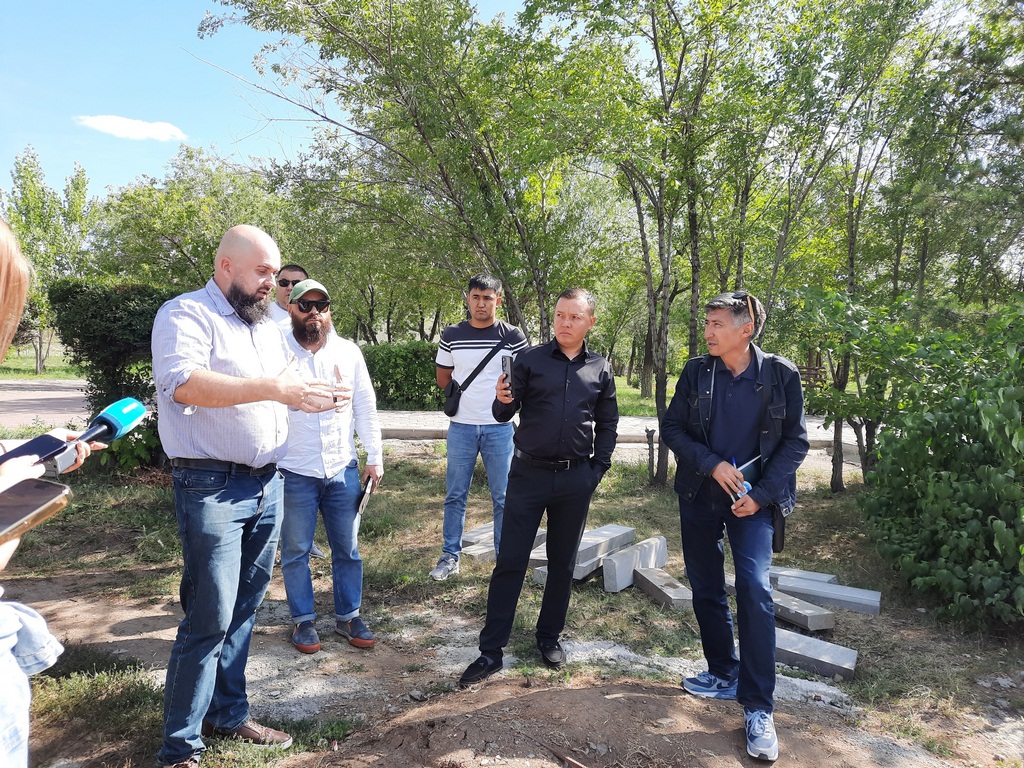 Фото автора В Караганде за кинотеатром Ленина находится сквер – деревьев здесь достаточно, но есть пустыри. Неравнодушные горожане пытаются озеленять это место, получается не всегда удачно. Вчера, 5 августа, в сквере побывали члены Общественного совета области: они прояснили вопрос с зелёными насаждениями и выработали рекомендации, сообщает корреспондент ekaraganda.kz.