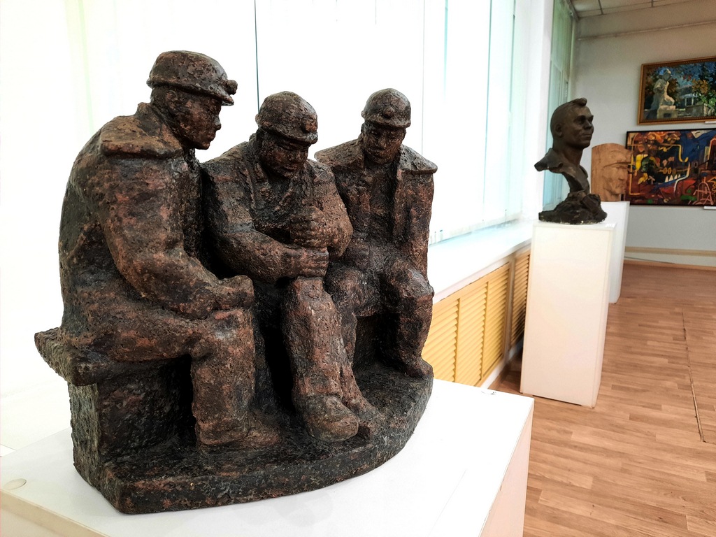 «Одной из скульптур, представленных на нашей выставке, стала "Молодая смена" карагандинца Алексея Цоя. Композиция эта небольшая по размеру, она отражает силу духа горняков и шахтерское братство. Автор изобразил трёх крепких, широкоплечих горняков в спецодежде, которые обсуждают рабочий процесс. Лица их напряжены, мужчины полны решимости выполнить поставленную задачу», — описывает главный хранитель музея.