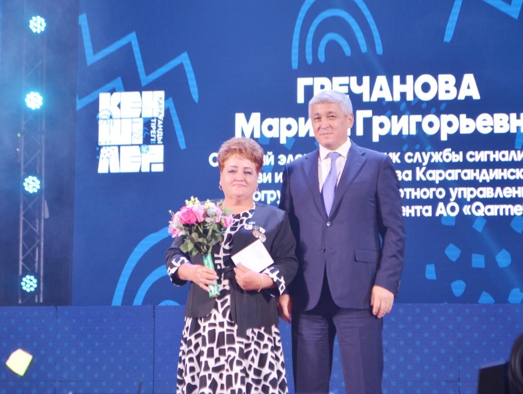 Старший электромеханик Карагандинского погрузочно-транспортного управления Марина Гречанова тоже получила высокую награду – «Енбеқ даңқы» I степени. В своей профессии она 38 лет, окончила Экибастузский горный техникум, а потом по распределению попала в угольный департамент.