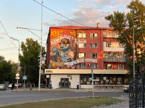 «У дома по Ермекова, 26 отличная просматриваемость с разных точек, активный пешеходный трафик, плюс именно здесь расположена кофейня инвестора. В итоге фасад стал и логичным холстом для работы, и новой точкой притяжения», - делится Валерия Хасуева.