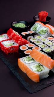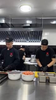 Помимо суши и роллов, в ассортименте представлены пицца, лапша WOK и японские десерты. Пицца особенно популярна у карагандинцев благодаря тонкому тесту и обилию начинки, а тесто для неё и для лапши готовят прямо в цехе.