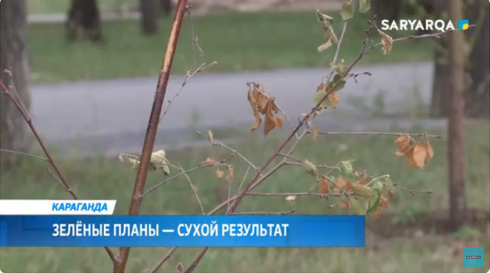 Фото: кадр из видео В Караганде снова обсуждают судьбу зелёных насаждений. В сквере «Алаш» десятки деревьев засохли всего за одно лето. Жители уверены — причина в отсутствии ухода. Что говорят экоактивисты и подрядчики, выясняла корреспондент saryarqatv.