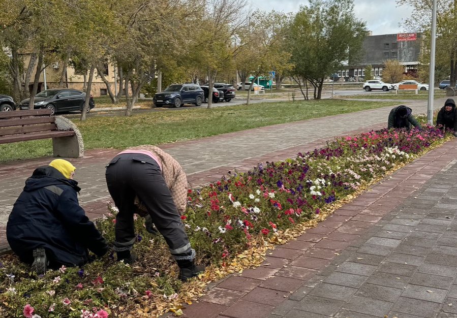 В Караганде начали выкапывать однолетние цветы: клумбы готовят к зиме