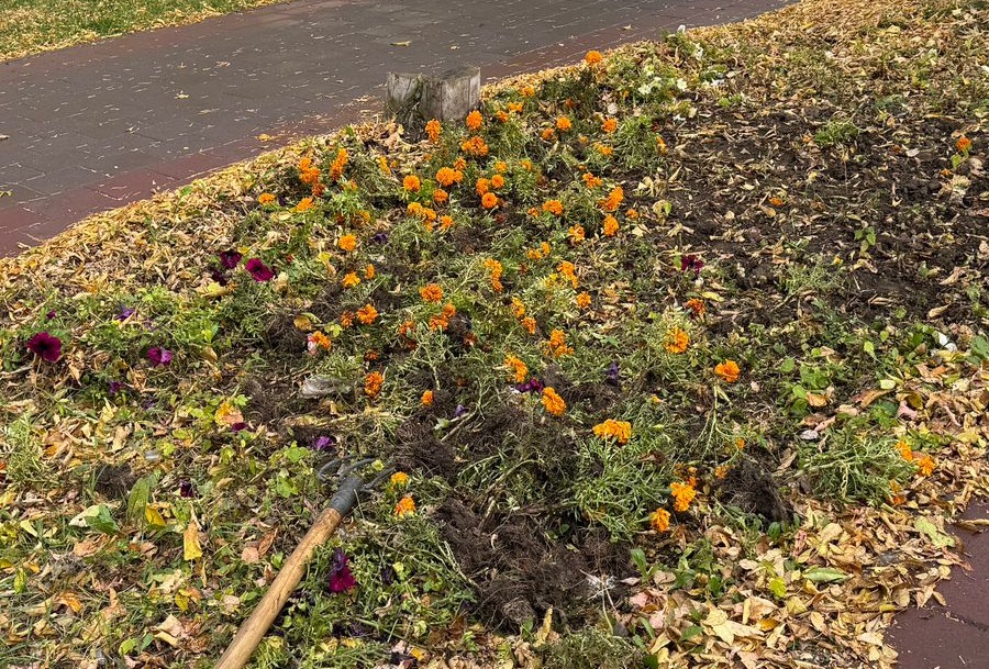 Фото автора В Караганде осень окончательно вступила в свои права, и коммунальные службы уже приступили к сезонным работам. На городских клумбах началась традиционная уборка: первыми под лопату отправились однолетние цветы. Яркие бархатцы, петунии и другие растения, которые все лето украшали улицы и скверы, теперь выкапывают, чтобы подготовить почву к зиме, передает корреспондент ekaraganda.kz.