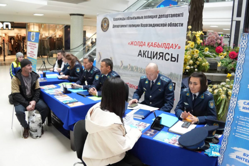 В фойе торгового дома «Таир» департамент полиции Карагандинской области организовал акцию «Приемная на дороге», в ходе которой жители города смогли напрямую задать вопросы представителям полиции.