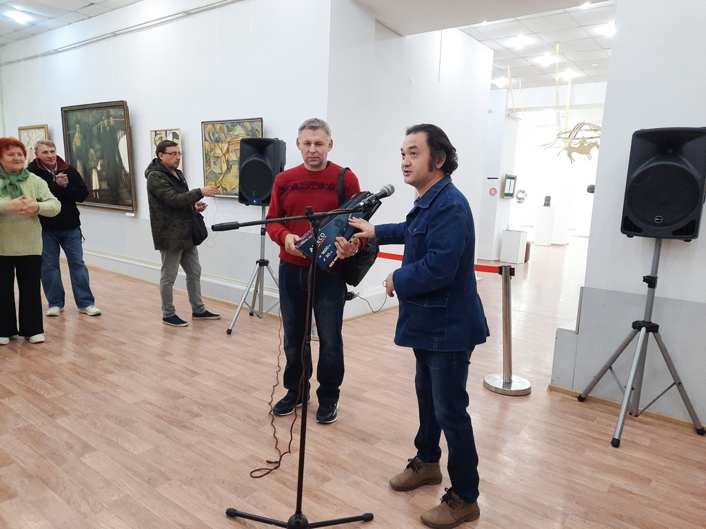 А чуть ранее председатель Союза художников Караганды Айдархан Калмаханов подарил виновнику торжества и, как выяснилось, юбиляру электропилу – «расходный материал» для дальнейшей работы над скульптурами. Сергея, рассказал Айдархан, знает давно – когда-то они пересекались ещё в художественной школе.
