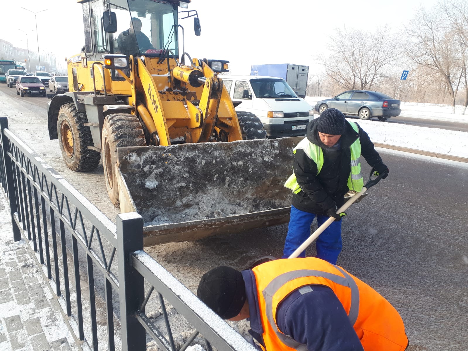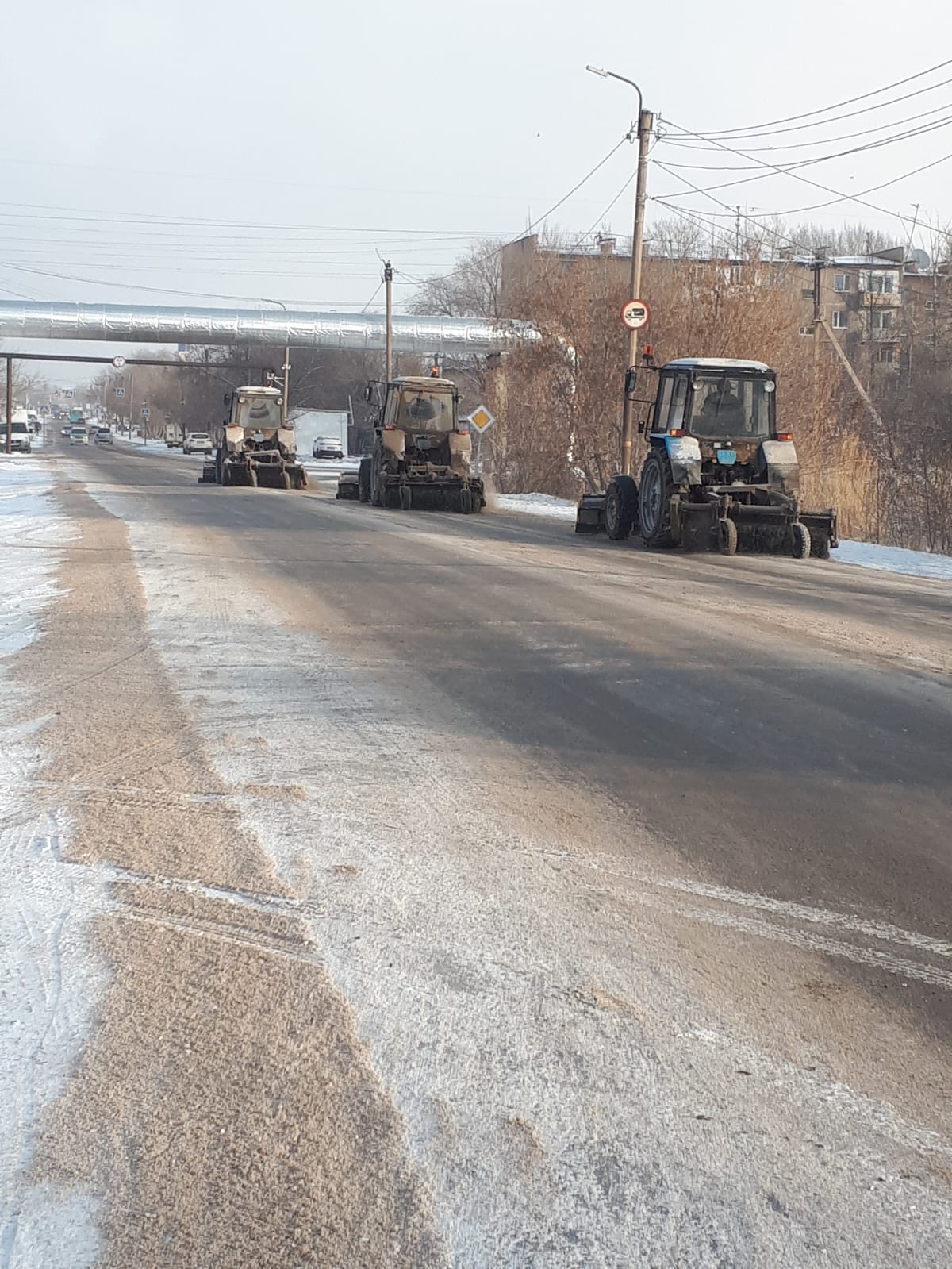 - После ночных заморозков дороги Караганды посыпают тоннами пескосолянки