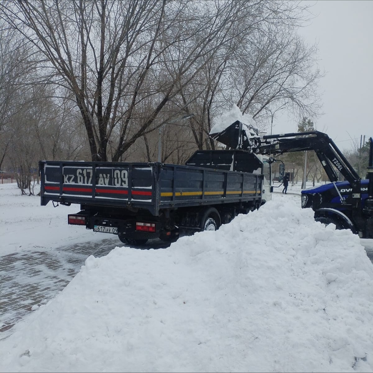 Зимняя работа в парках Караганды: как убирают снег после обильных осадков
