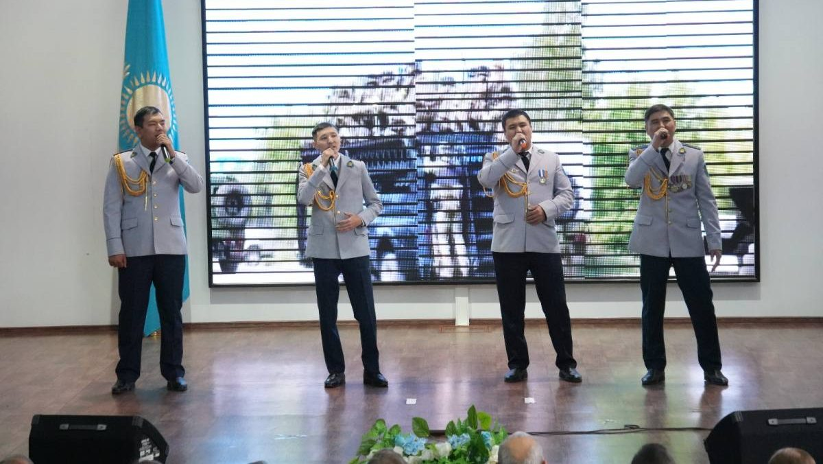 Праздничное мероприятие продолжилось концертом, в котором приняли участие действующие сотрудники, курсанты академии МВД РК имени Б. Бейсенова и ветеран ОВД, полковник полиции в отставке Жанатай Сембеков. Кульминацией концерта стало исполнение гимна полиции «Айбынды сақшылар» ВИА «Сарыарка» и Жанатаем Сембековым.